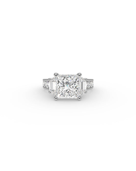 Princess-Cut Solitaire Diamond Ring Engagement Ring Three Stone Ring with Side Stones