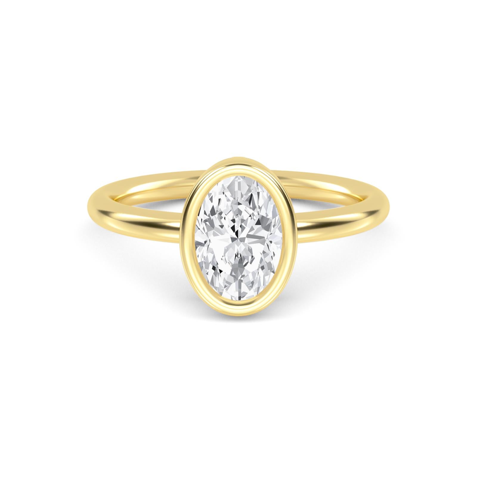 Sleek and sophisticated, our Elegant Oval Bezel-Set Solitaire Ring features a stunning oval-cut diamond encased in a smooth, modern bezel setting. Designed for maximum brilliance and everyday elegance, this timeless piece is crafted in your choice of 14k or 18k yellow, white, or rose gold, or luxurious platinum. Perfect for engagements, anniversaries, or as a statement of personal style, this ring is a symbol of refined beauty and enduring love.